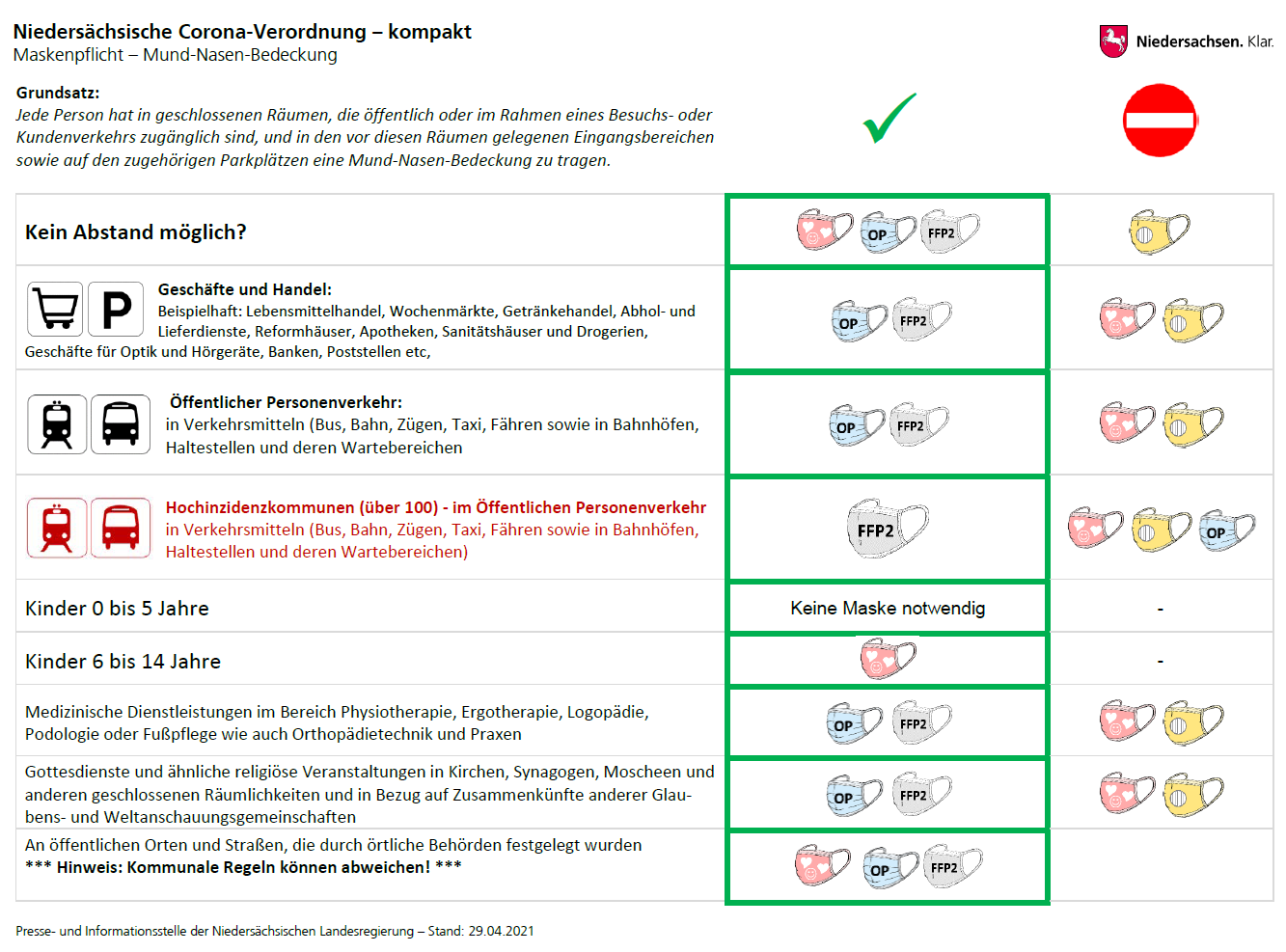 Die verordnung sieht in der erweiterten maskenpflicht konkret „medizinische masken vor. Niedersachsen wollte die maskenpflicht im einzelhandel für kreise mit niedriger inzidenz aufheben. In niedersachsen gilt diese pflicht zum tragen einer medizinischen maske insbesondere an folgenden orten/in folgenden situationen welche masken genau sind zulässig? Niedersachsen ist von seinem plan zur aufhebung der maskenpflicht beim einkaufen zurückgerudert. #mnb rettet leben, erklärte gesundheitsministerin daniela behrens (spd).